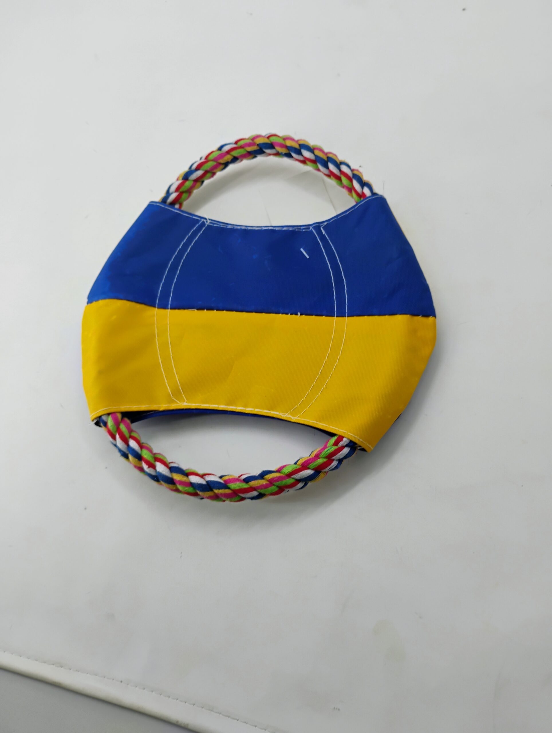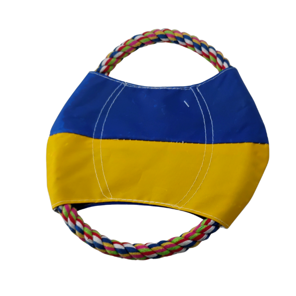 – Bright yellow and blue body with a multicolored rope (white, blue, green, and red) for eye-catching play.